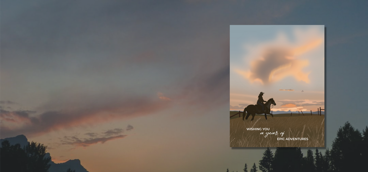Embrace the unknown and saddle up for an Epic Adventure! Our Birthday Card featuring a Girl riding through a sun-kissed pasture toward a glowing mountain sunset is sure to kickstart the journey. You're in for an unforgettable year!