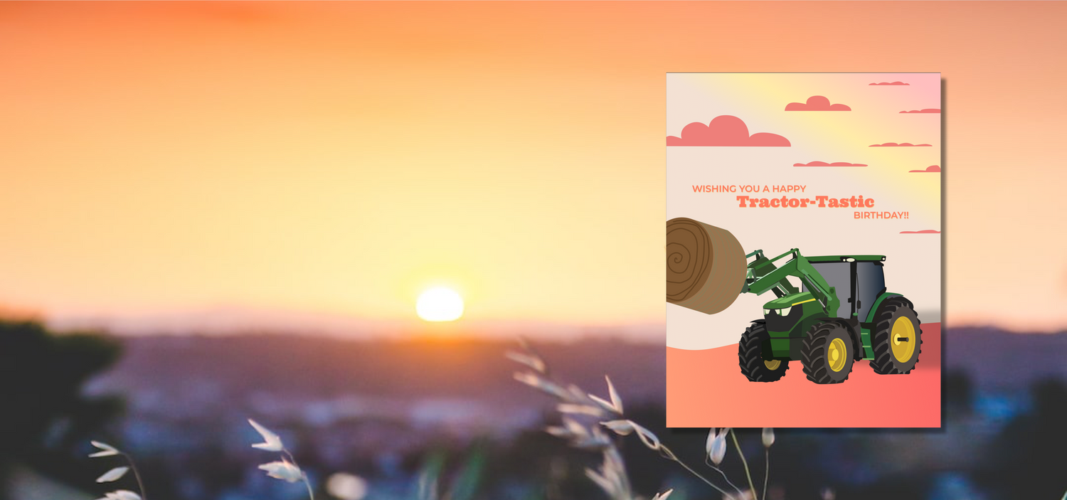 Birthday wishes don't get any more farm-themed than with our Tractor-Tastic greetings! Whether it's feeding cows at the morning sunrise, or just having tractor-tastic fun, this card will bring smiles.