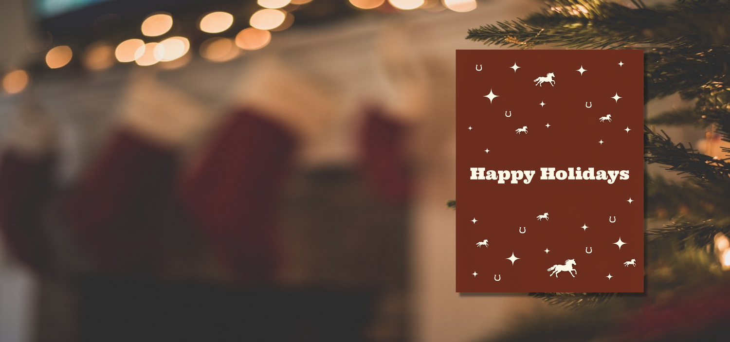 Bring some joy to the holidays with our Happy Holidays greeting cards! Featuring charming horseshoes and horses, this card will convey your warm wishes to friends and family with style. Make them smile with a heartfelt holiday greeting!