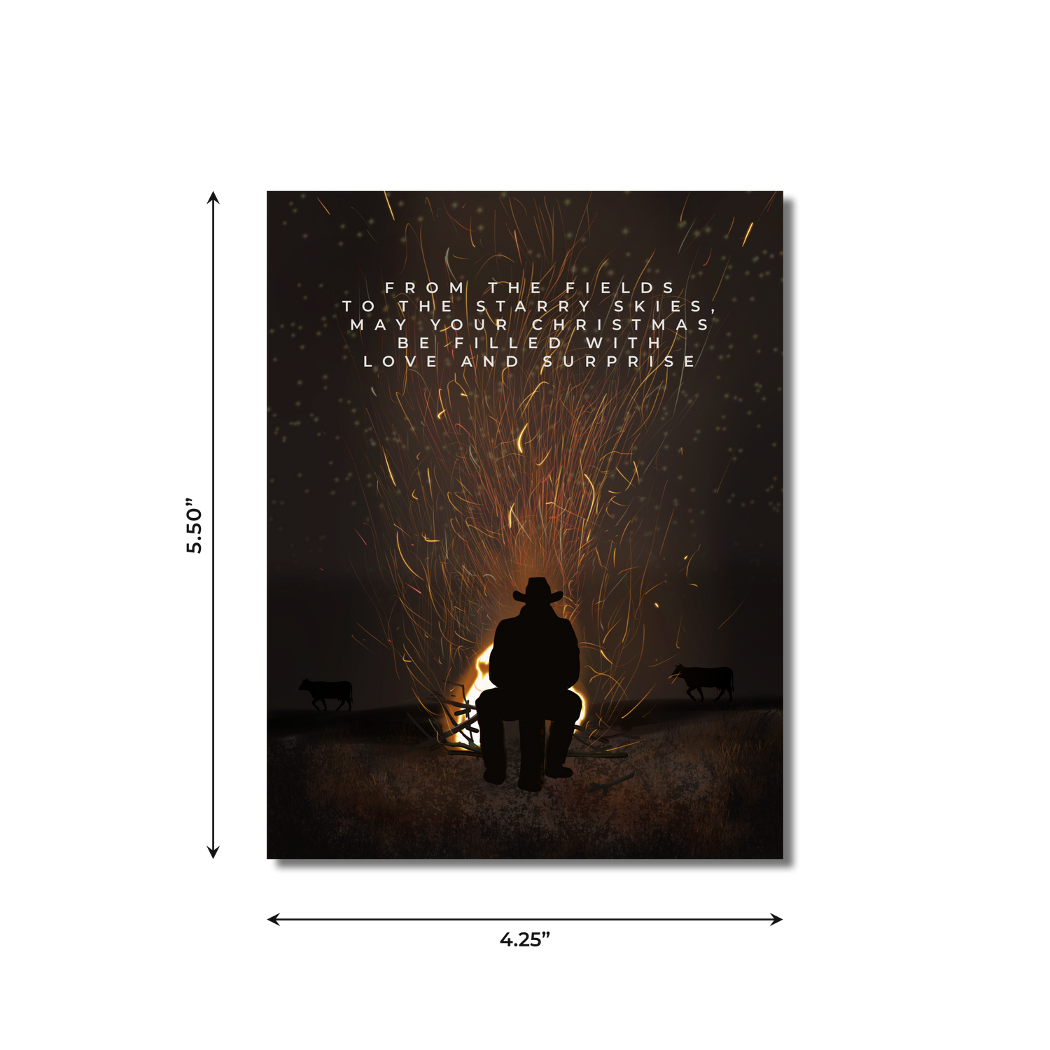 Wish your loved ones a season of joy and adventure with our Merry Christmas Card. Featuring a cowboy tending to his cattle under the starry sky, it's a heartwarming way to spread love and surprise this holiday season. Embrace the rustic charm of the fields and let your loved ones feel the warmth of your wishes!