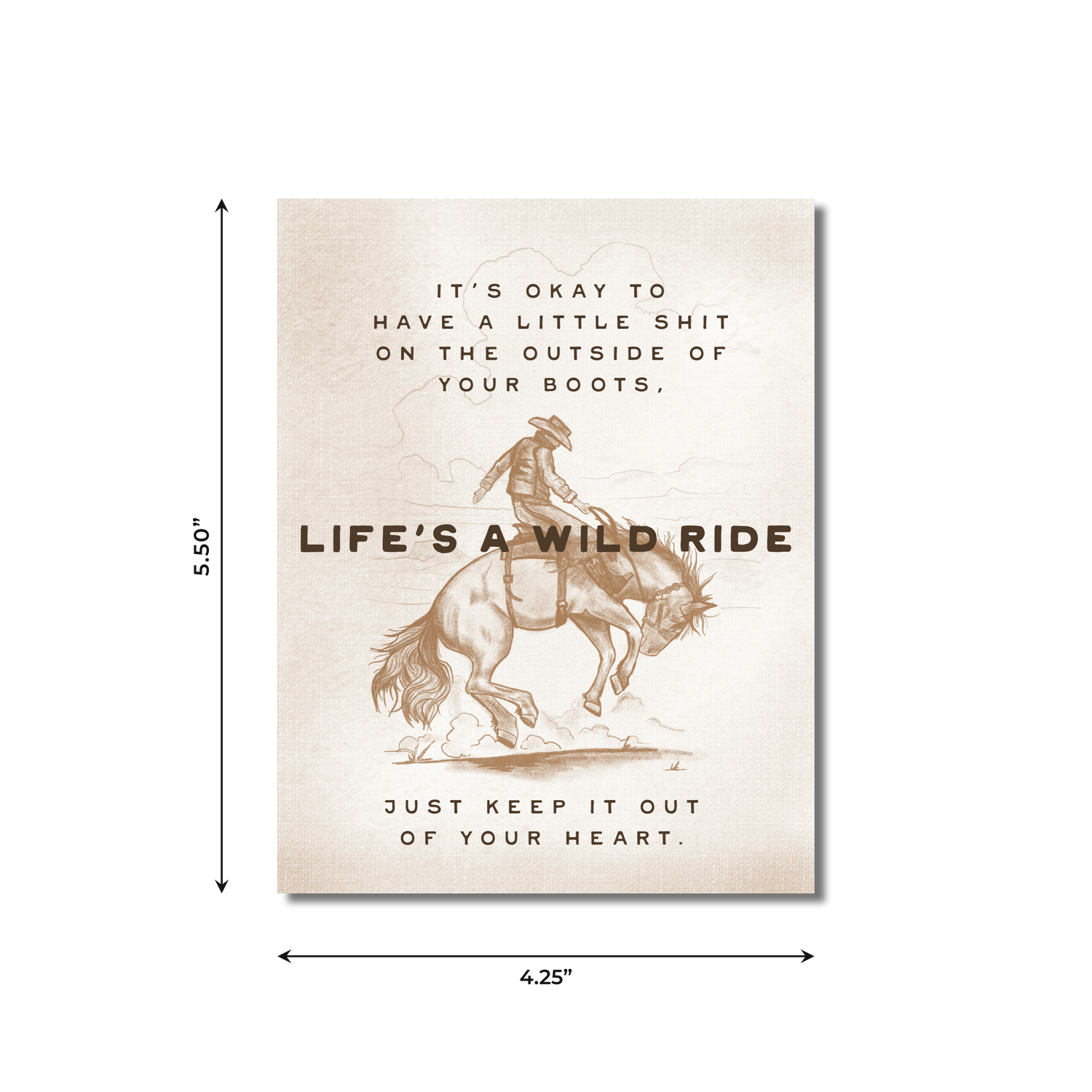 Remind your loved ones to keep it real with Life's a Wild Ride greeting card. Featuring a cowboy getting bucked off his horse, this card is a reminder to stay honest and true to yourself. Share the love and spread positivity with this heartfelt card.