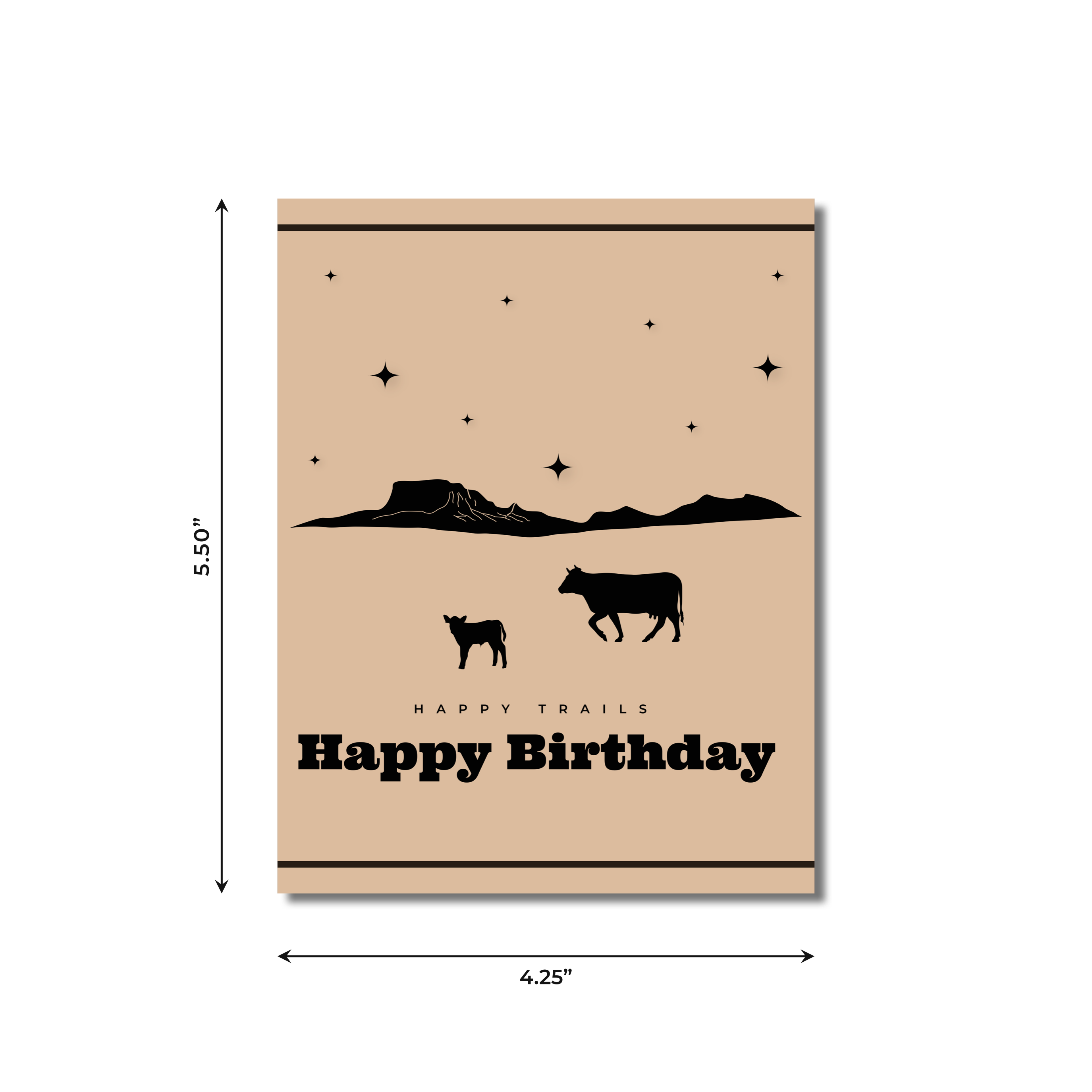 Celebrate loved ones with this unique Happy Trails Birthday Card! It features a charming cow and calf under the stars, sure to evoke feelings of warmth and joy. Show them you care with this heartfelt greeting today!