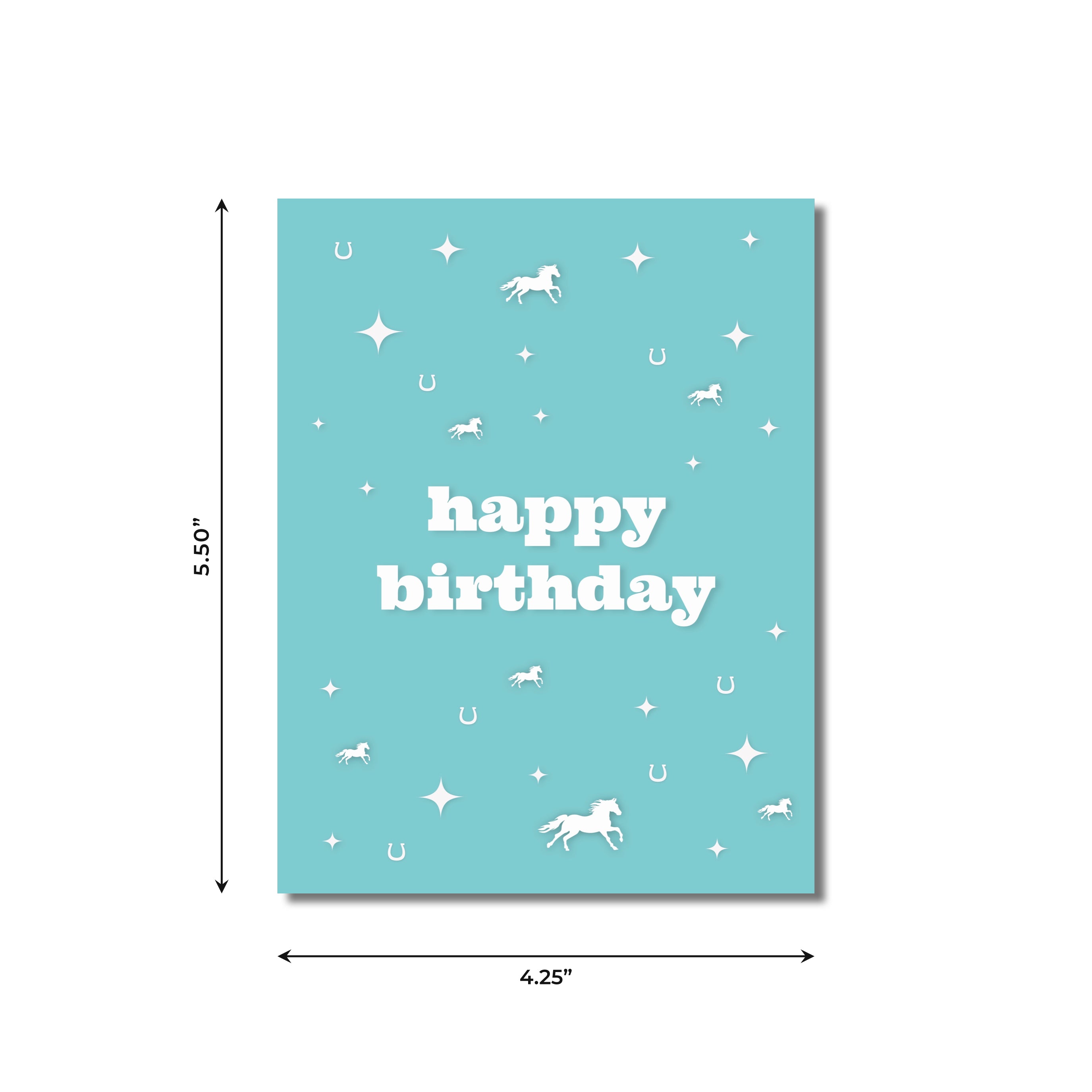Send luck and love with this Lucky Horse birthday card! Featuring adorable horse and horseshoe graphics’s, this card is perfect to let someone know you care.🤠