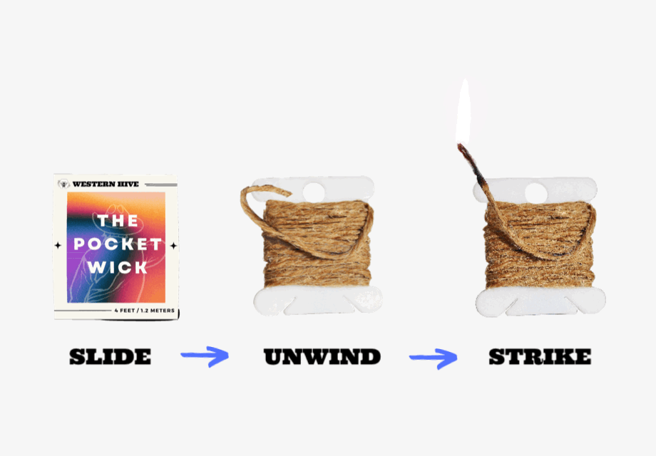 - Strike your lighter as you would normally do, but before touching your flame to anything you want to light, transfer that fire to your Pocket Wick.